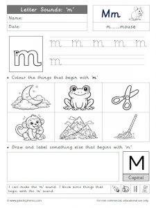 Practise writing the letter ‘m’ then colour some pictures which begin with an ‘m’.