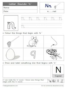 Practise writing the letter ‘n’ then colour some pictures which begin with an ‘n’.