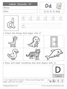 Practise writing the letter ‘d’ then colour some pictures which begin with an ‘d’.