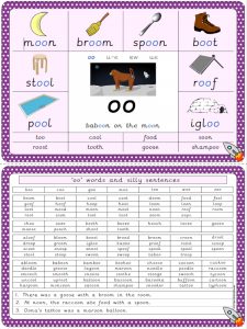 ‘oo’ (long u) worksheets, games, flashcards, PowerPoints and other phonics resources.