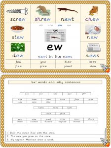 Worksheet to support children learning to read and spell words containing the ‘ew’ grapheme. Identify the ‘ew’ pictures and spell the words. Complete the ‘ew’ handwriting line. Complete and read the ‘ew’ words.