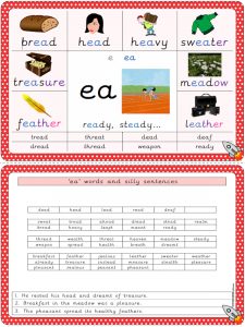 ‘ea’ (short e) worksheets, games, flashcards, PowerPoints and other phonics resources.