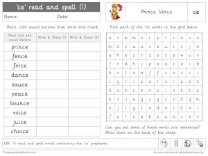 ‘ce’ worksheets, games, flashcards, PowerPoints and other phonics resources.