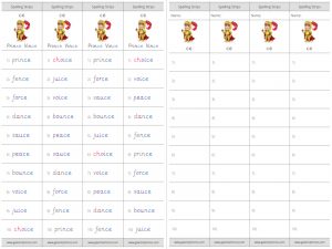 A convenient set of spelling lists containing ‘-ce’ words. Great for sticking into spelling books or sending home to learn for homework.