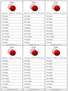 ‘dge’ worksheets, games, flashcards, PowerPoints and other phonics resources.
