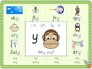 ‘-y’ (long I) worksheets, games, flashcards, PowerPoints and other phonics resources.