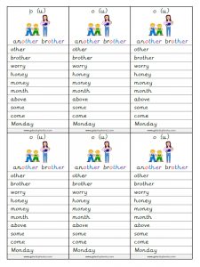 ‘o’ (as in ‘brother’) worksheets, games, flashcards, PowerPoints and other phonics resources.