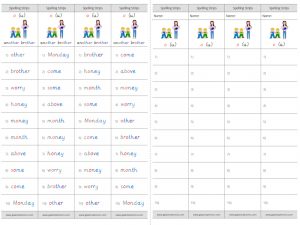 A convenient set of spelling lists containing ‘o’ (short u) words. Great for sticking into spelling books or sending home to learn for homework.