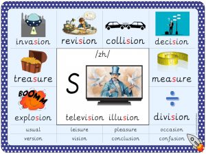‘s’ (as in ‘television’) worksheets, games, flashcards, PowerPoints and other phonics resources.