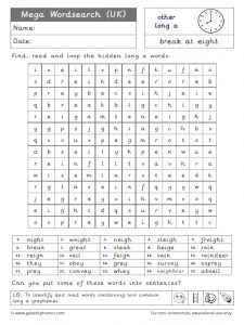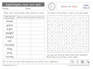 Less common ‘long a’ worksheets, games, flashcards, PowerPoints and other phonics resources including ‘eigh’, ‘ei’, ‘ey’ and ‘ea’.