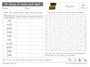 ‘ol’ (long o) worksheets, games, flashcards, PowerPoints and other phonics resources.