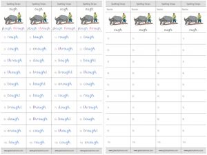 A convenient set of spelling lists containing ‘ough’ words. Great for sticking into spelling books or sending home to learn for homework.