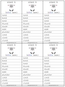 A convenient set of spelling lists containing ‘silent b’ words. Great for sticking into spelling books or sending home to learn for homework.