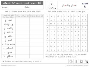 Silent h worksheet including adding sound buttons, a look/cover/write/check section and a simple wordsearch.