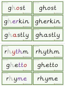 Six double-sided ‘silent h’ word flashcards. Print, cut along the horizontal lines, fold and laminate.