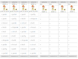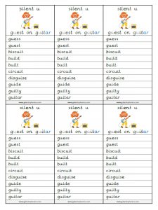 A convenient set of spelling lists containing ‘silent u’ words. Great for sticking into spelling books or sending home to learn for homework.